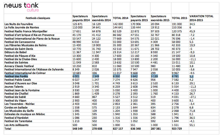 Today, the Festival des forêts (Forest festival) is the 2nd art music festival North of Paris in terms of attendance. It is among the most active in France regarding creation.